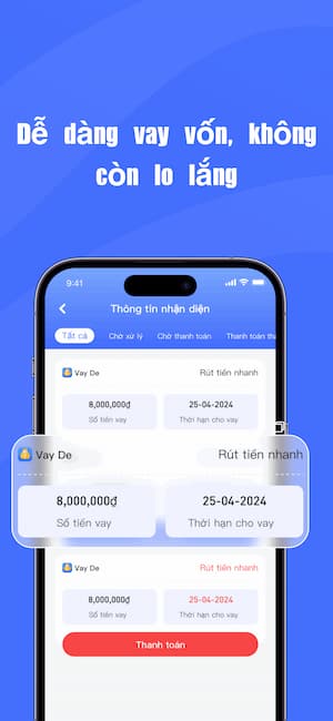 Vay dễ nhanh chóng hỗ trợ bạn trong các vấn đề tài chính. Sau khi nâng cấp từ thương hiệu Tai Vuong, ứng dụng mới có diện mạo mới nhưng chất lượng dịch vụ vẫn như trước. Nếu từng sử dụng dịch vụ của chúng tôi, tài khoản và thông tin của bạn vẫn giữ nguyên, sử dụng vay tiền như thông thường